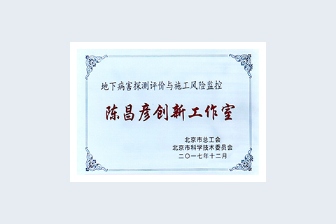 2017年12月 “地下病害探測評價與施工風險監控”職工創新工作室獲 評為以北京市勞動模范陳昌彥命名的“陳昌彥創新工作室”
