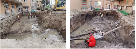 面對復雜的現場情況,全體技術人員齊心協力、眾志成城,克服場地狹小、地質條件復雜、地上地下障礙物眾多等困難,爭分奪秒奮戰96小時,提出切實可行的地基基礎方案建議,高效完成小湯山醫院B區新建項目的巖土工程咨詢服務工作,為項目修繕贏取時間,為堅決打贏新型冠狀病毒肺炎疫情防控阻擊戰貢獻力量。