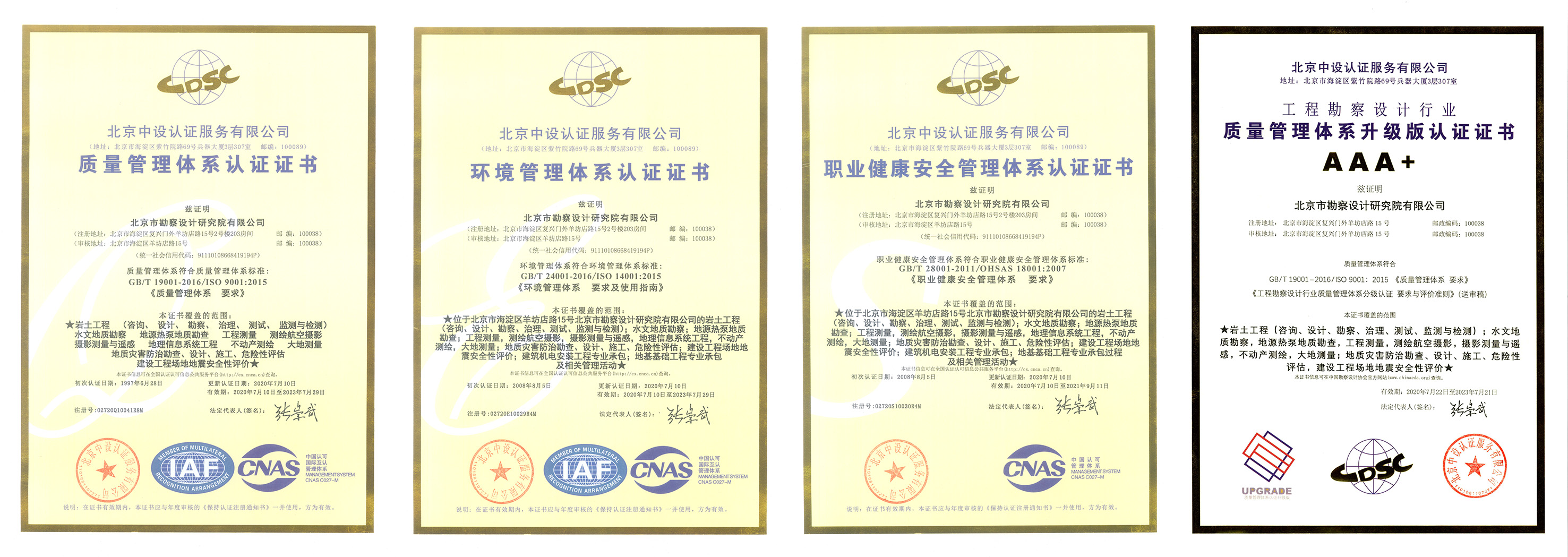 6月23日,我院順利通過質量、環境、職業健康安全三體系監督審核和質量管理體系升級版認證審核,再次獲得AAA+認證證書。作為首批質量管理體系升級版認證試點單位,我院已于2017年~2020年連續五年獲得工程勘察設計行業質量管理體系分級認證AAA認證證書,并于2021年進一步獲得AAA+認證證書。