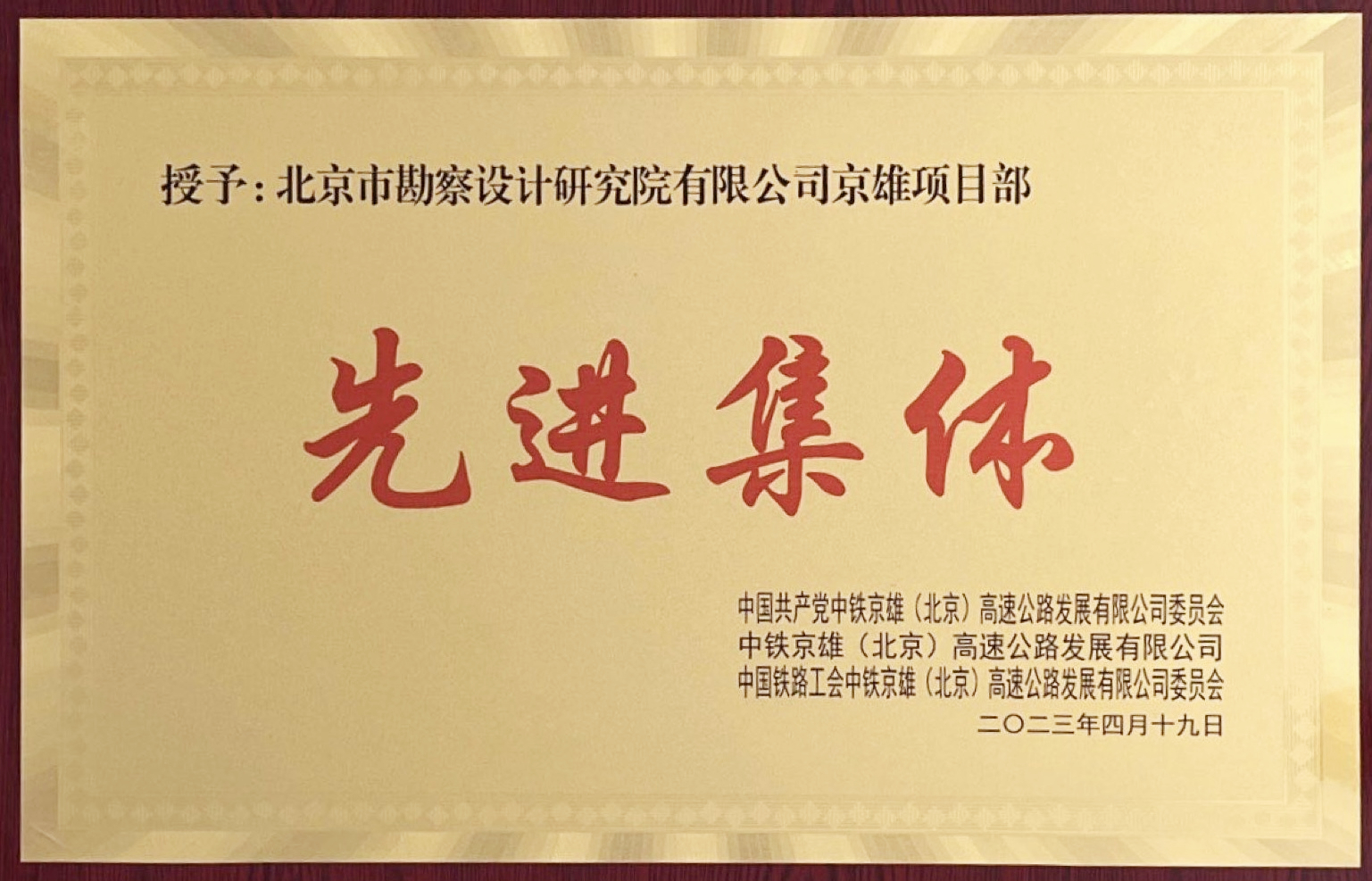 經過為期兩年的項目建設,北勘團隊通過精湛的技術、高度的責任感和優質的服務獲得了業主單位的高度好評,榮獲2022年度京雄高速公路(北京段)工程建設“先進集體”,多位員工獲評“先進工作者”榮譽稱號,真正做到了“為顧客規避風險,創造價值”。