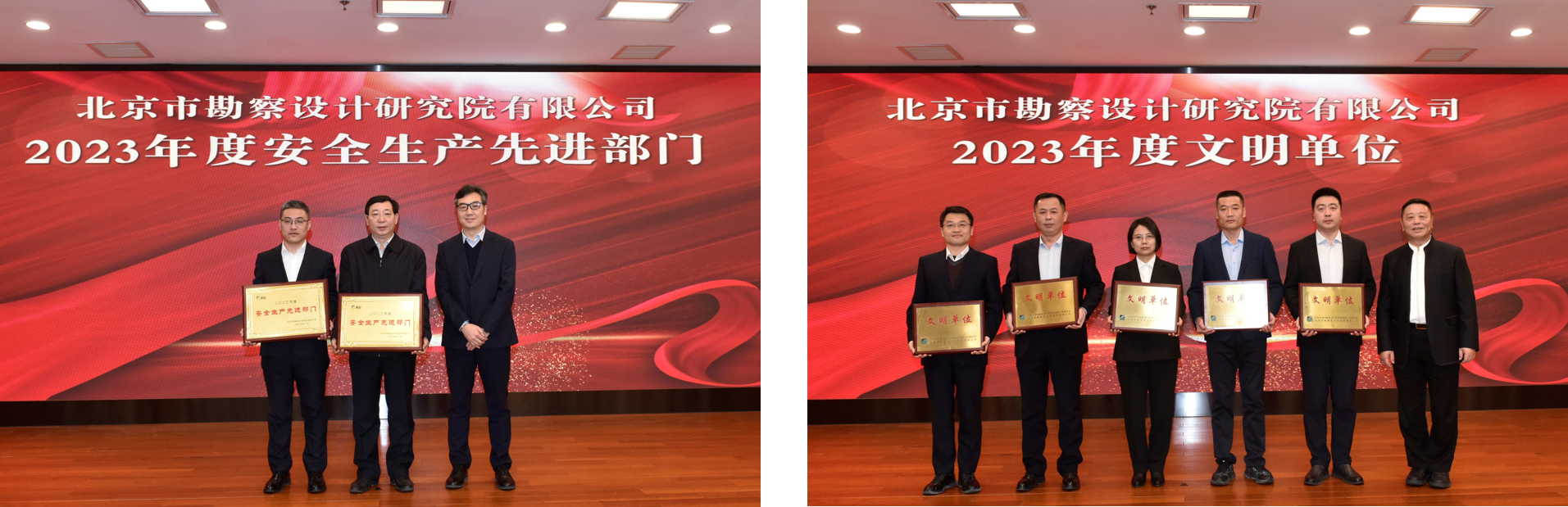 黨委副書記/總經理高文明作《勇做新時代行業領軍者,爭當高質量發展排頭兵,用奮斗畫筆繪就新征程上再攀高峰的新畫卷》工作報告。2023年,我院堅持穩中求進工作總基調,頂住復雜嚴峻的內外部環境壓力,堅持發展是第一要務,做好“三個統籌”和“四個持續推進”,較好完成全年目標任務,達到“十四五”規劃中期預期。同時緊扣“形象年”主題開展系列活動,全方位加強企業品牌建設,提升企業感召力、影響力和服務效能,在首都發展和行業技術進步中展現北勘作為、北勘貢獻。