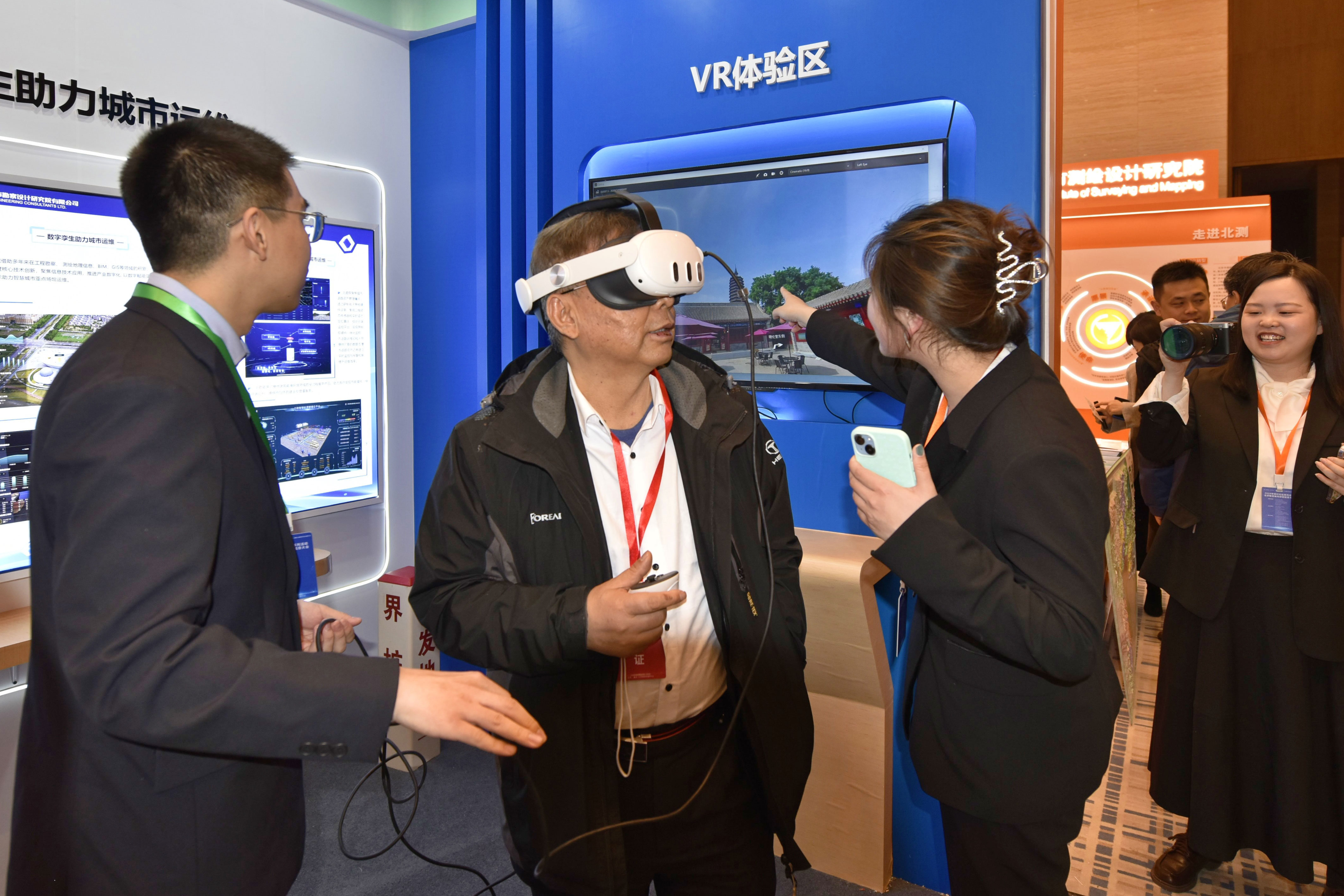 我院特設(shè)智慧城市主題展臺,更創(chuàng)新性地利用VR設(shè)備展示新型基礎(chǔ)測繪在通州“三廟一塔”智慧景區(qū)的示范應(yīng)用,讓觀眾足不出戶深度游覽景區(qū)。