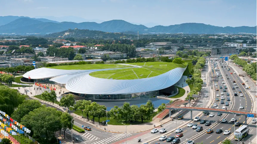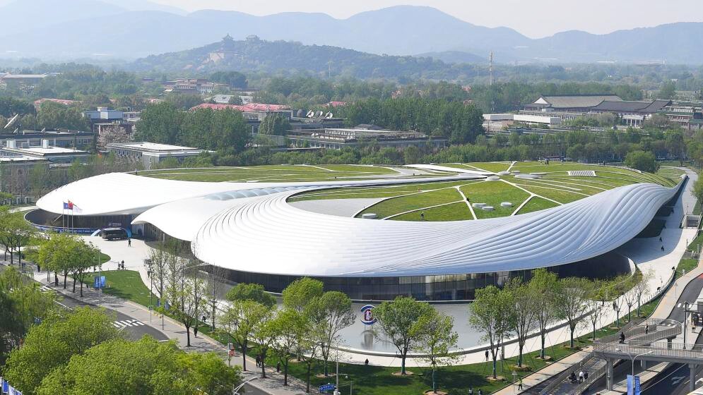 本年度的中關(guān)村論壇首次在新會(huì)址——中關(guān)村國(guó)際創(chuàng)新中心舉辦。登高眺望,中關(guān)村國(guó)際創(chuàng)新中心像一枚葉片點(diǎn)綴在城市中,優(yōu)雅地向外界傳達(dá)著“科技、文化、綠色”的設(shè)計(jì)理念。