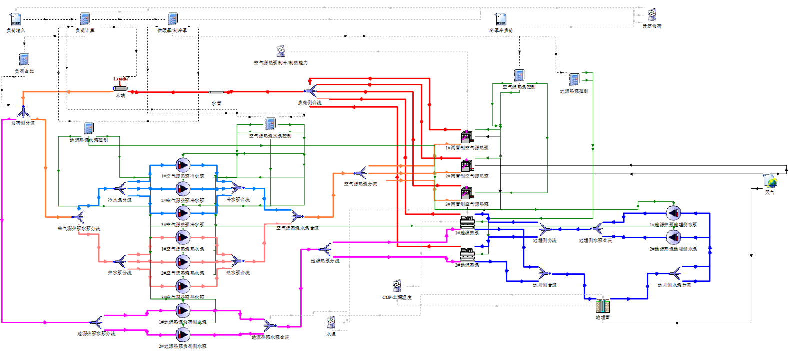 項(xiàng)目能源系統(tǒng)積極響應(yīng)國(guó)家雙碳理念,對(duì)綠色低碳的可再生能源進(jìn)行復(fù)合使用,采用地源熱泵+空氣源熱泵的耦合系統(tǒng)。我院承擔(dān)從勘查、優(yōu)化設(shè)計(jì)、施工到智慧能源系統(tǒng)的全過(guò)程服務(wù),提供集“安全穩(wěn)定、綠色低碳、經(jīng)濟(jì)高效、智慧管理”為一體的多能耦合綜合能源解決方案,助力這座簡(jiǎn)約、現(xiàn)代和充滿未來(lái)感的科技會(huì)客廳“四時(shí)皆春”。