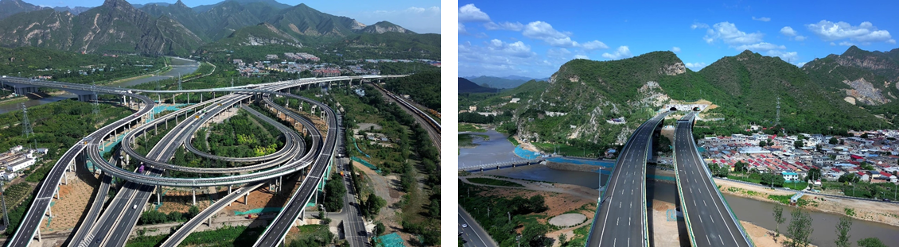 2024年7月1日15時30分,歷經4年施工建設的京蔚高速(北京段),正式通車運營。京蔚高速(北京段)原稱國道109新線高速公路,全長約65.4公里,東起西六環軍莊橋,沿線途經門頭溝山區7鎮,宛如一條白玉帶橫貫于京西的綠水青山之間,經三跨永定河、四越清水河,向西至京冀界與京蔚高速(河北段)相連,全線橋隧比高達88%,是目前北京市里程最長、規模最大、投資額最高的單體山區高速公路,對北京非首都功能紓解、產業轉移及轉型、山區平急兩用基礎設施建設具有重要意義。
