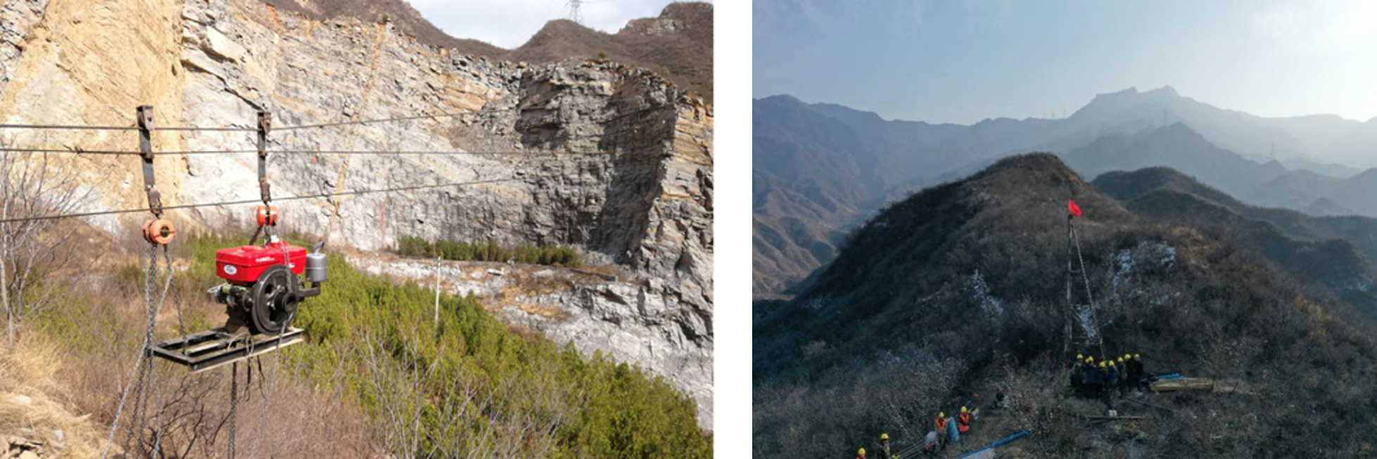 為守護綠水青山,同時克服山高谷深與常規鉆機笨重難以搬運的限制,采用“簡易索道+人工”的搬家思路,引入模塊可拆式鉆探設備與常規深孔鉆機相結合的鉆探方式,在滿足保護生態環境要求的同時有效縮短鉆機搬家周期。