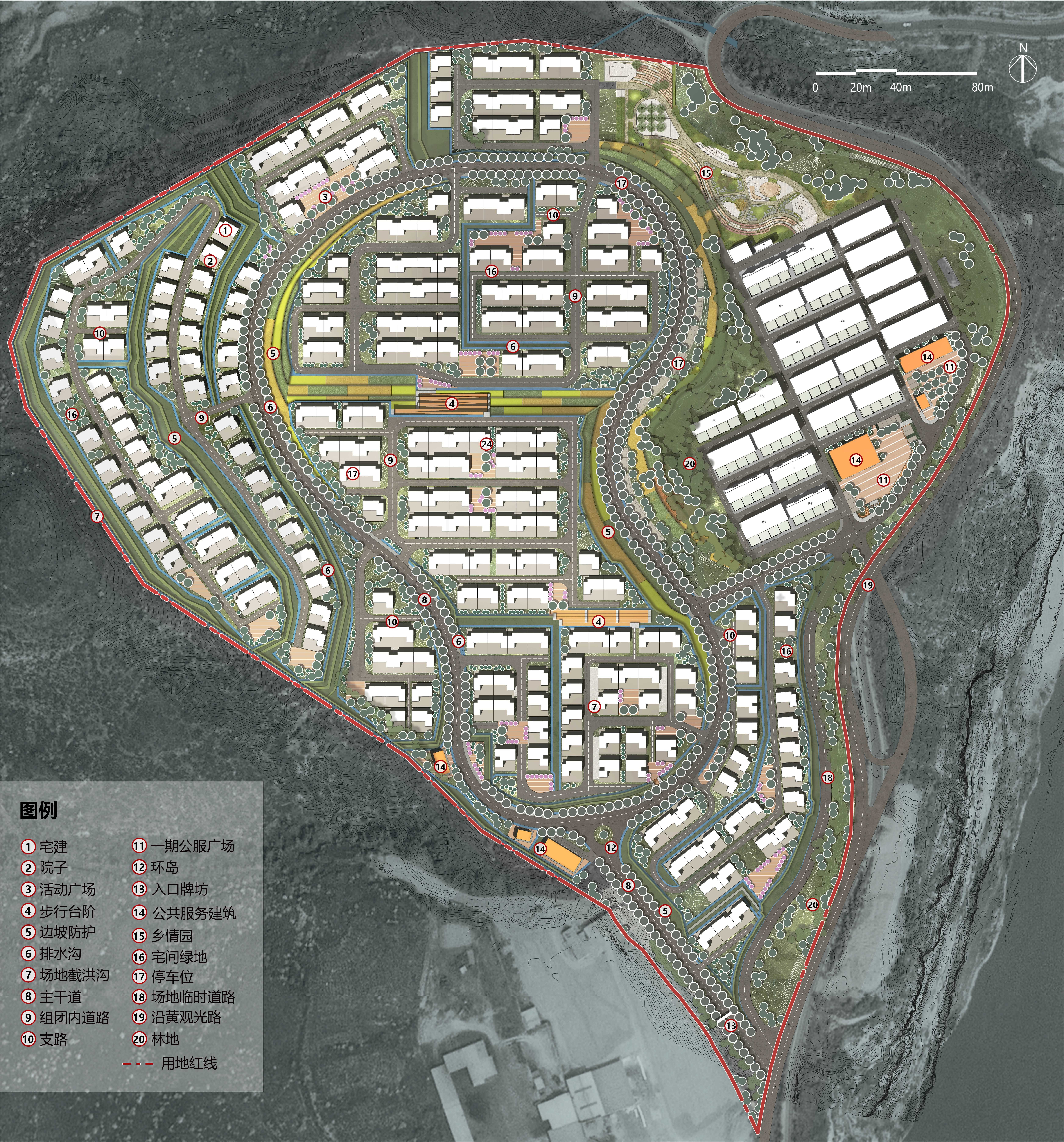 陜西清水川馮家塔煤礦移民搬遷新農村工程,是測繪分院為我們牽線搭橋承接的第一個全專業綜合性項目,就像一場及時雨澆灌了萌芽期的設計分院。項目規劃總用地24.40公頃,地處黃河岸邊,地勢西北高東南低,最大高差達70m,涉及建筑工程、超高邊坡、地形整治、地基處理等多專業融合,工程問題復雜,具有極大的挑戰性。
