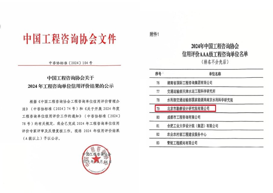 12月25日,在中國工程咨詢協會開展的2024年工程咨詢單位信用評價工作中,我院獲得“2024年中國工程咨詢行業AAA級信用企業”榮譽稱號。