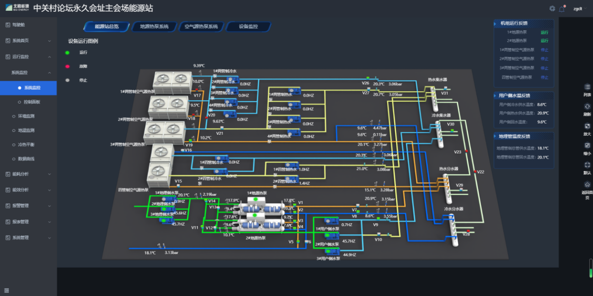 針對多能耦合系統量身打造的智慧能源管理云平臺,我院實現能源系統本地智慧控制及云端遠程管理,可根據使用對象和供能需求的不同,選擇最適宜的運行模式,實現能源系統高效低碳運行。